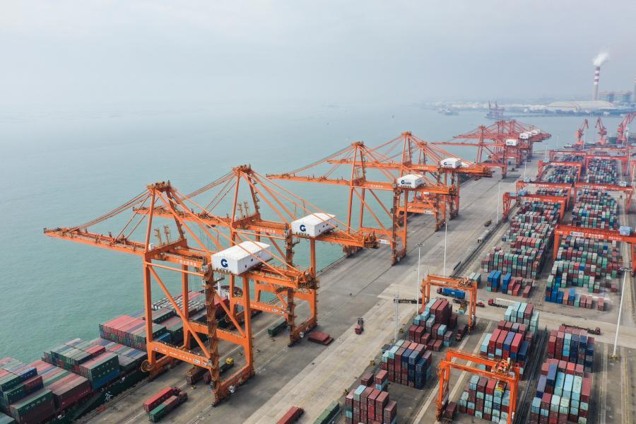 △这是中国(广西)自由贸易试验区钦州港片区的集装箱码头(2019年11月23日摄,无人机照片)。新华社记者 曹祎铭 摄